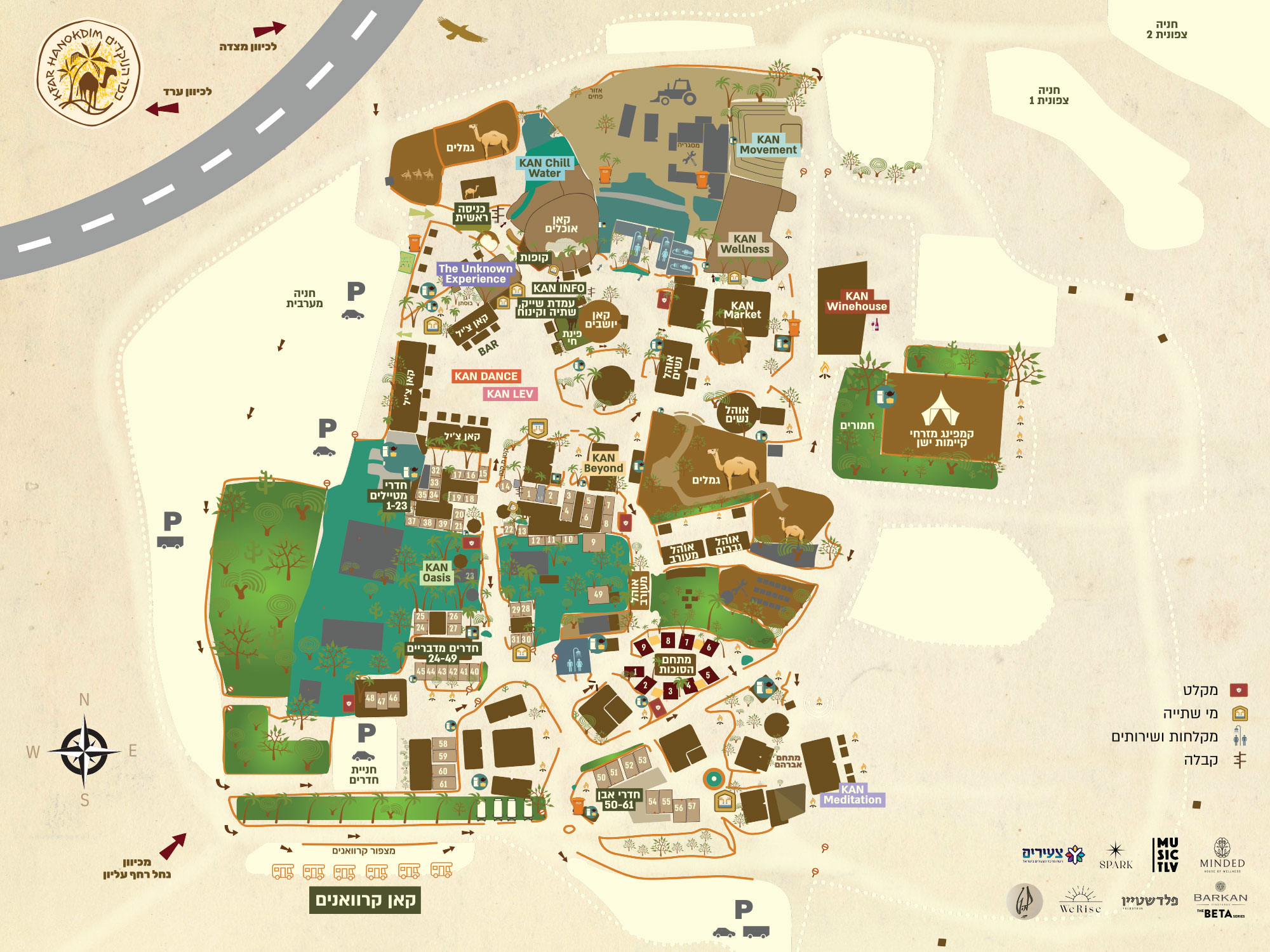 8 מתחמים פתוחים, שכל אחד מהם מעביר מסע אחר – תנועה וריפוי, יצירה, טקסים, עומק וחיבור